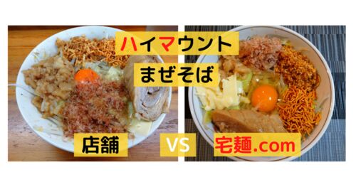 この記事では 宅麺.comで注文したラーメンは本当にお店と同じ味なのか!! 今回は「ハイマウント」のまぜそばを宅麺.comとお店で食べ比べてみた。お店と同じ味なのか比較していこう! お家ラーメン(店主監修カップ麺・チルド麺、宅麺.com、お持ち帰り、お取…