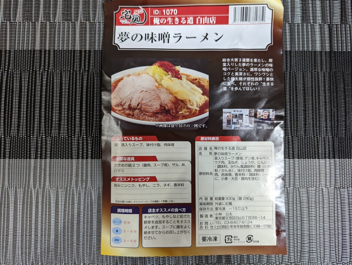 この記事では「俺の生きる道 白山店」の夢の味噌ラーメンを宅麺.comで頼んだ感想をレポートしていく。